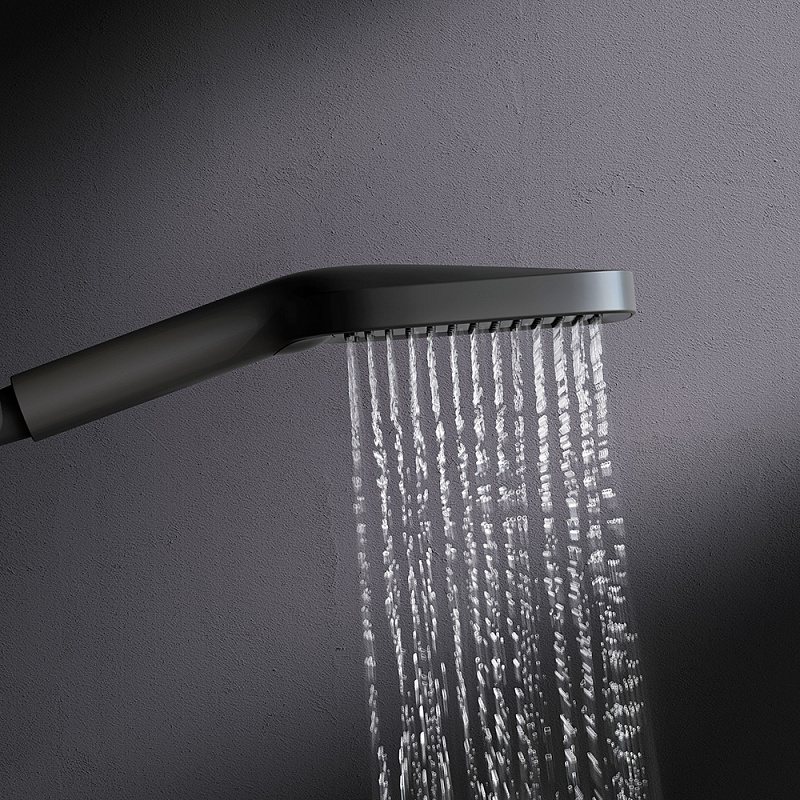 Премиальный размер лейки позволит вам почувствовать все преимущества использования дизайнерского продукта. Размер (Ш/Г/В): 103x60x250 мм. Размер ручного душа - 103х130 мм. Материал - пластик. Цвет - черный.