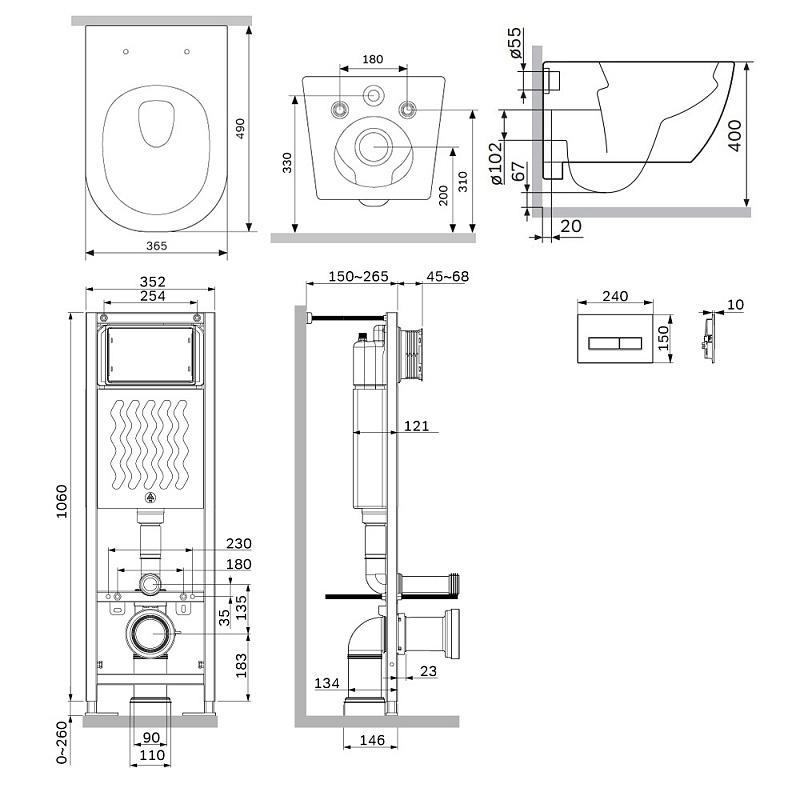 Унитаз подвесной с инсталляцией AM.PM Libre IS110138.601900 сиденьем микролифт, черной механ. клавишей