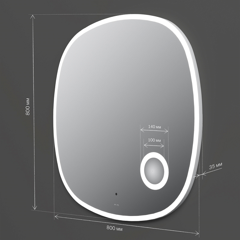 Зеркало с подсветкой в ванную закругленное 80 AM.PM Func M8FMOX0803SA с косметическим зеркалом сенсорное